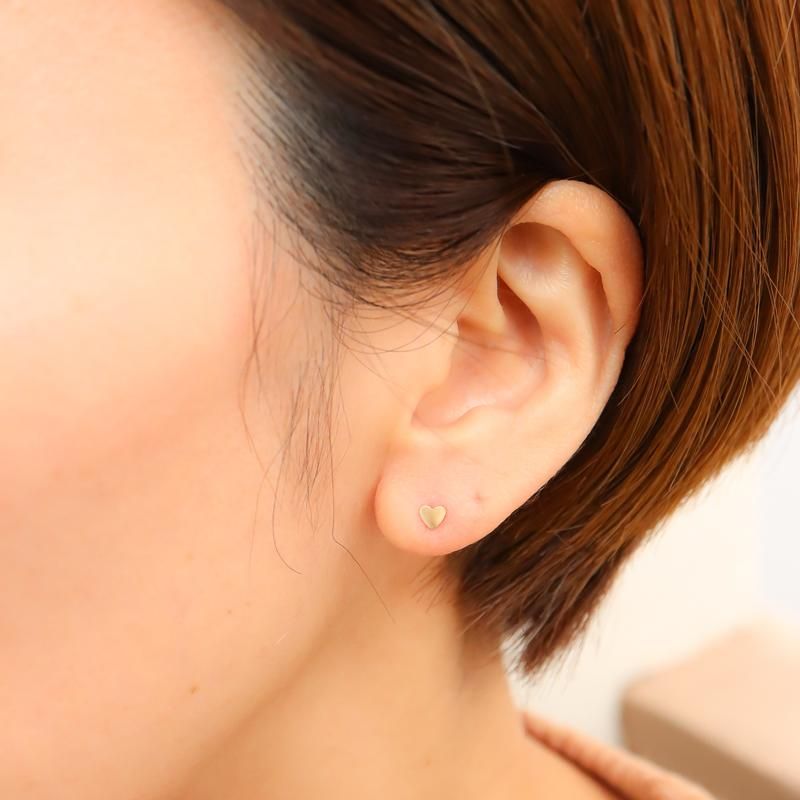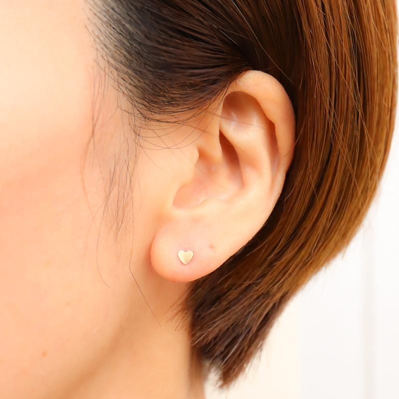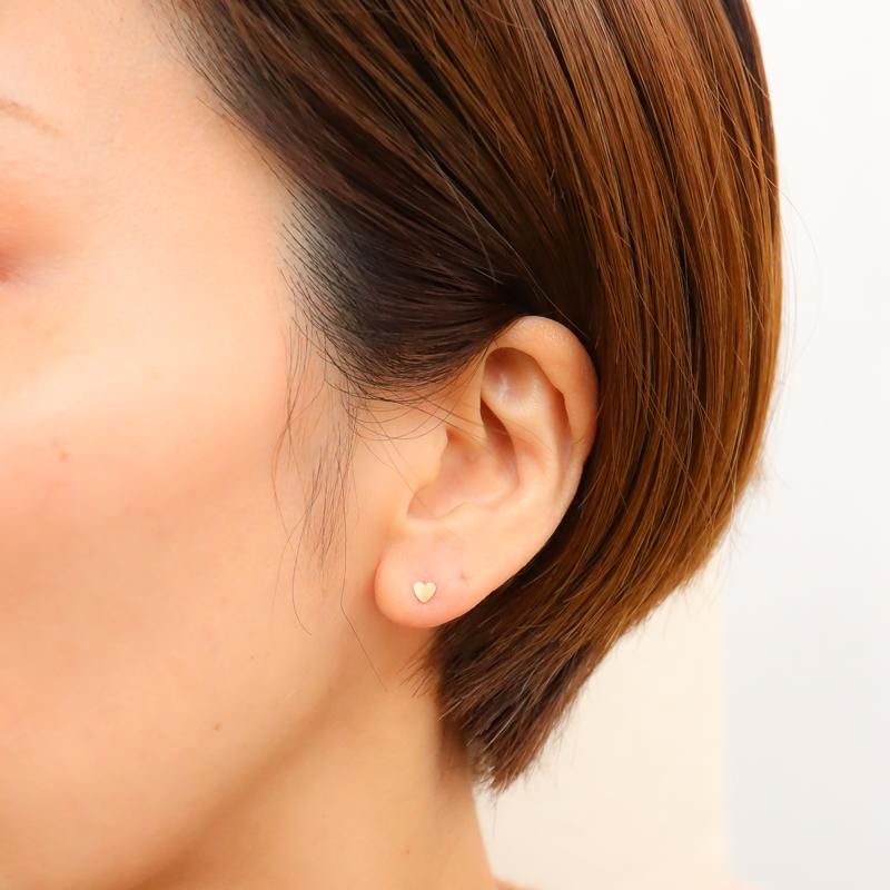 ----------耳たぶから出るか出ないかの小さなスタッドタイプのピアス。