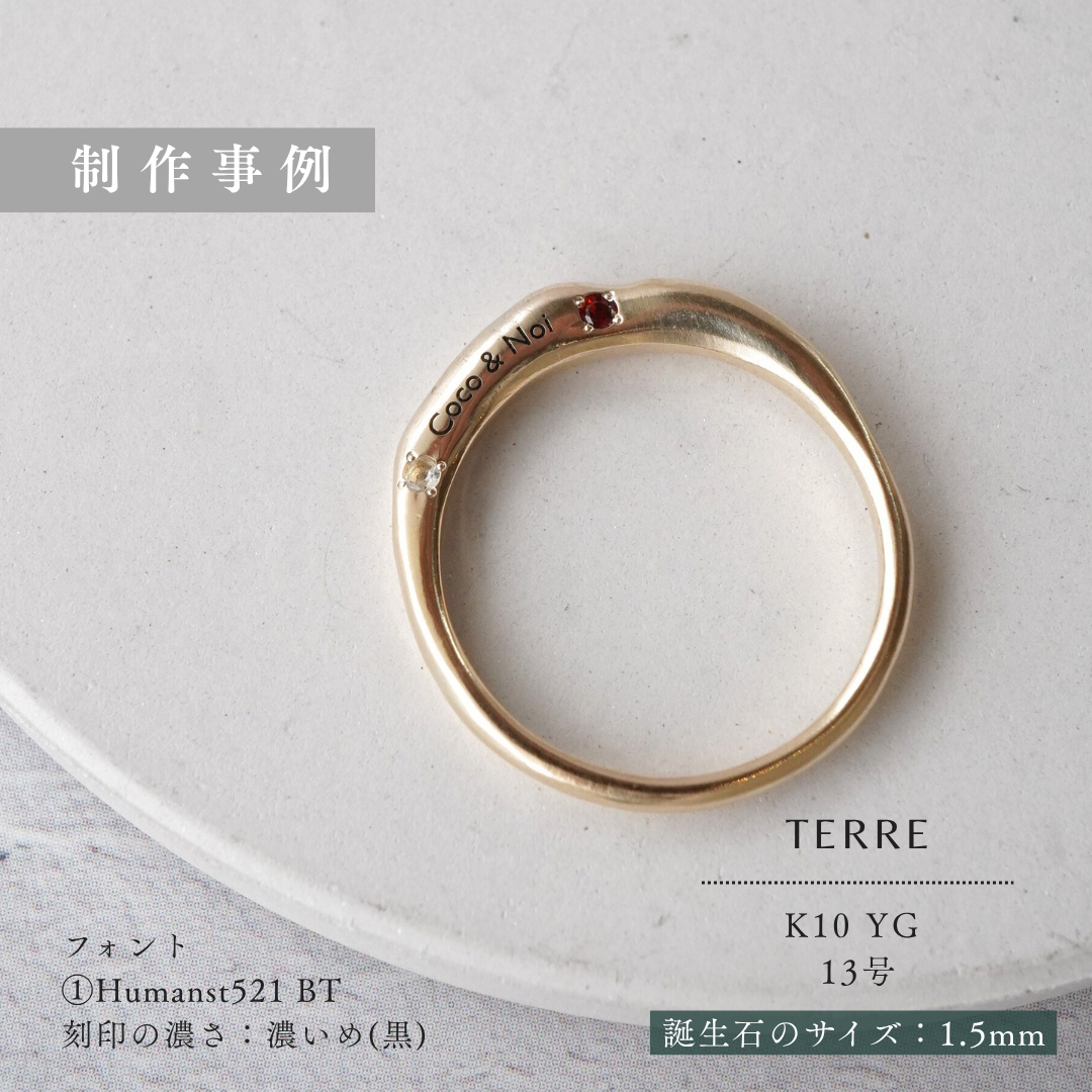 TERREリングには、誕生石や刻印を側面に入れることができます。