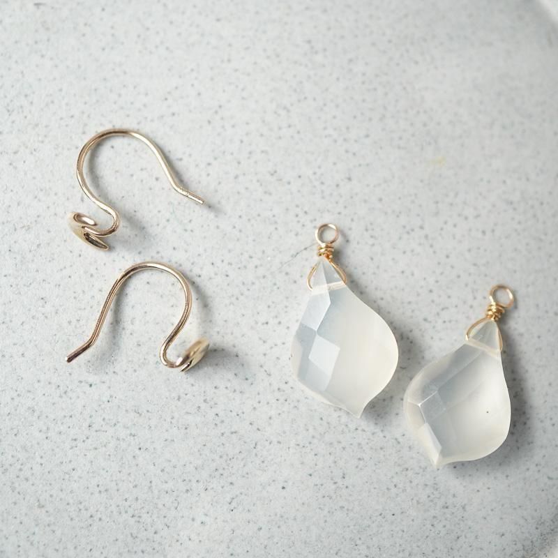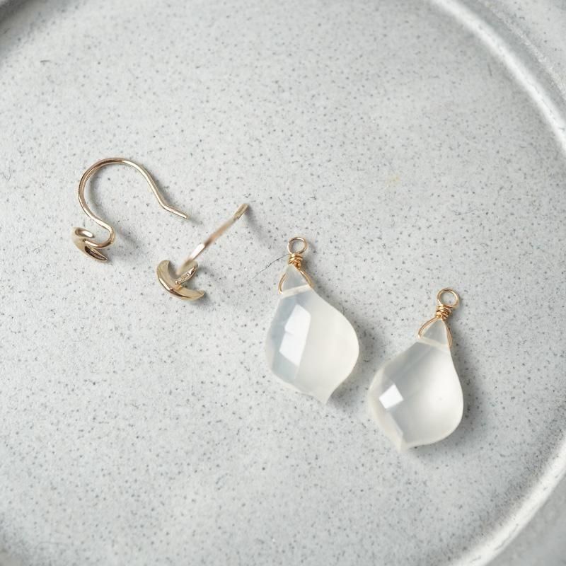 こちらは、ユニークなカットをしたレインボームーンストーンのチャームがセットになっているタイプ。