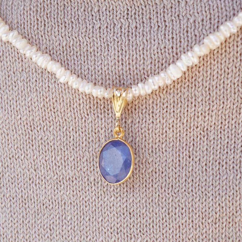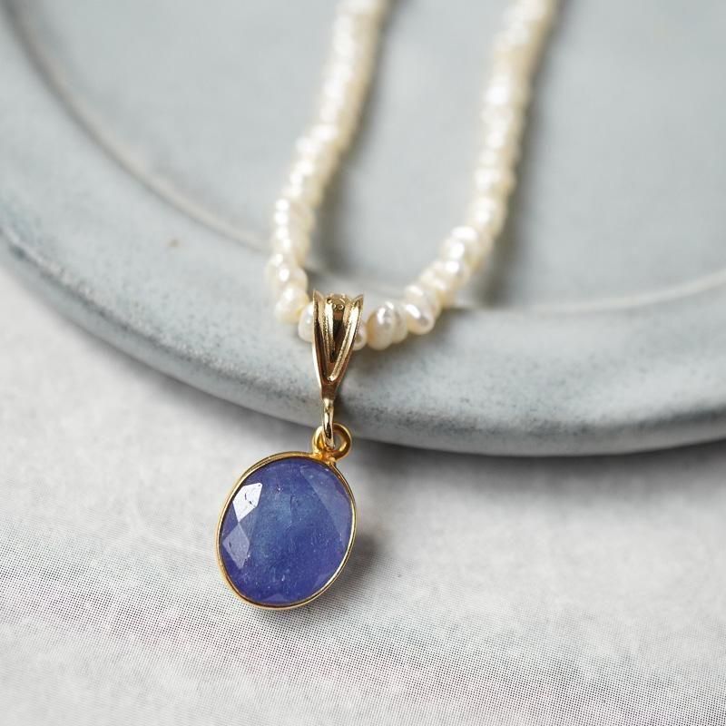 海の中のような輝きのタンザナイト。その周りをゴールドが縁取り、胸元で揺れる度に眩く煌めきます。