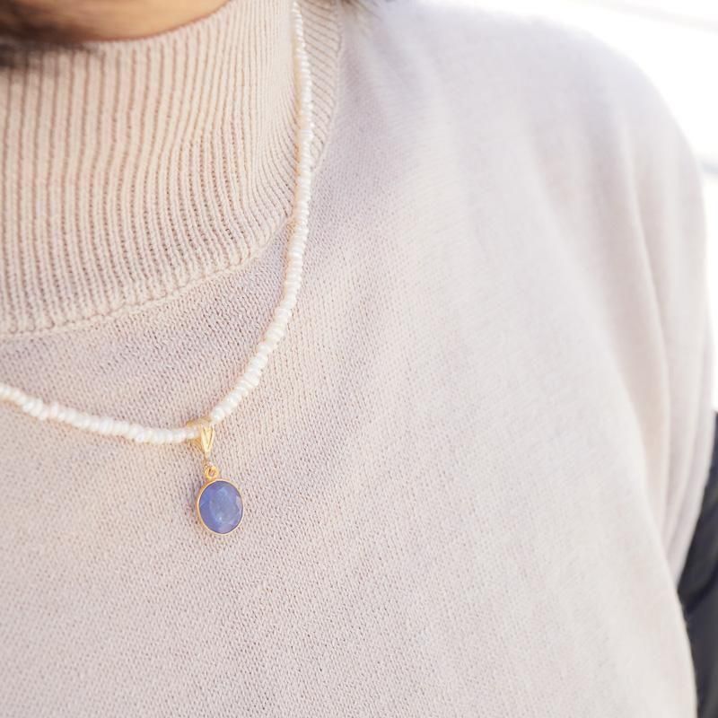 極小のパールネックレスとrimのチャームはとても相性が良く、おすすめの組み合わせです。