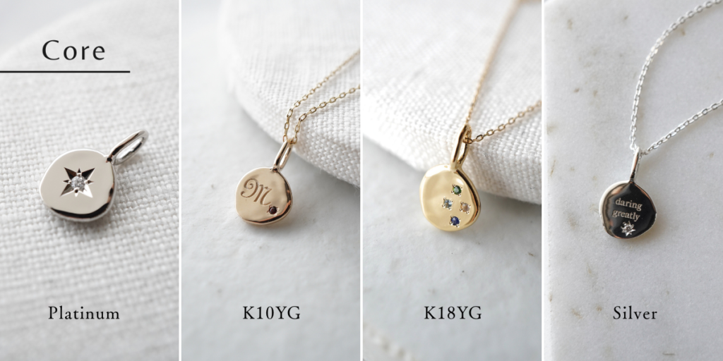 長く愛用していくことを考えて K10YG、K18YG、PT900 の3種類と、