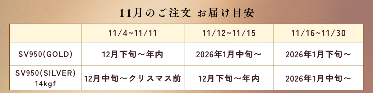 只今頂いたご注文分は、お届けまで約4週間頂いております。