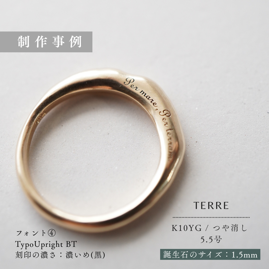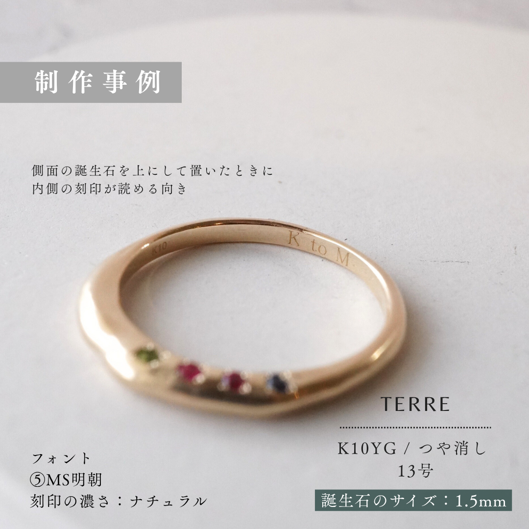 TERREリングには、誕生石や刻印を側面に入れることができます。