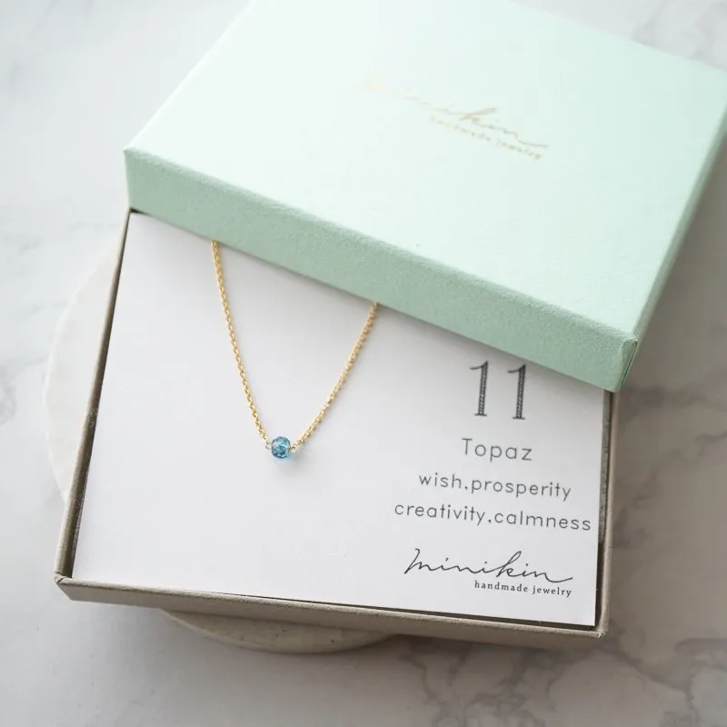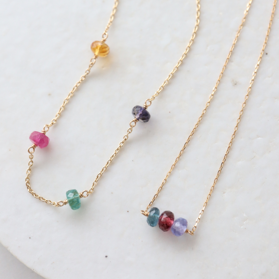 華奢なチェーンに小さな天然石がさり気なく輝くシンプルなネックレス。