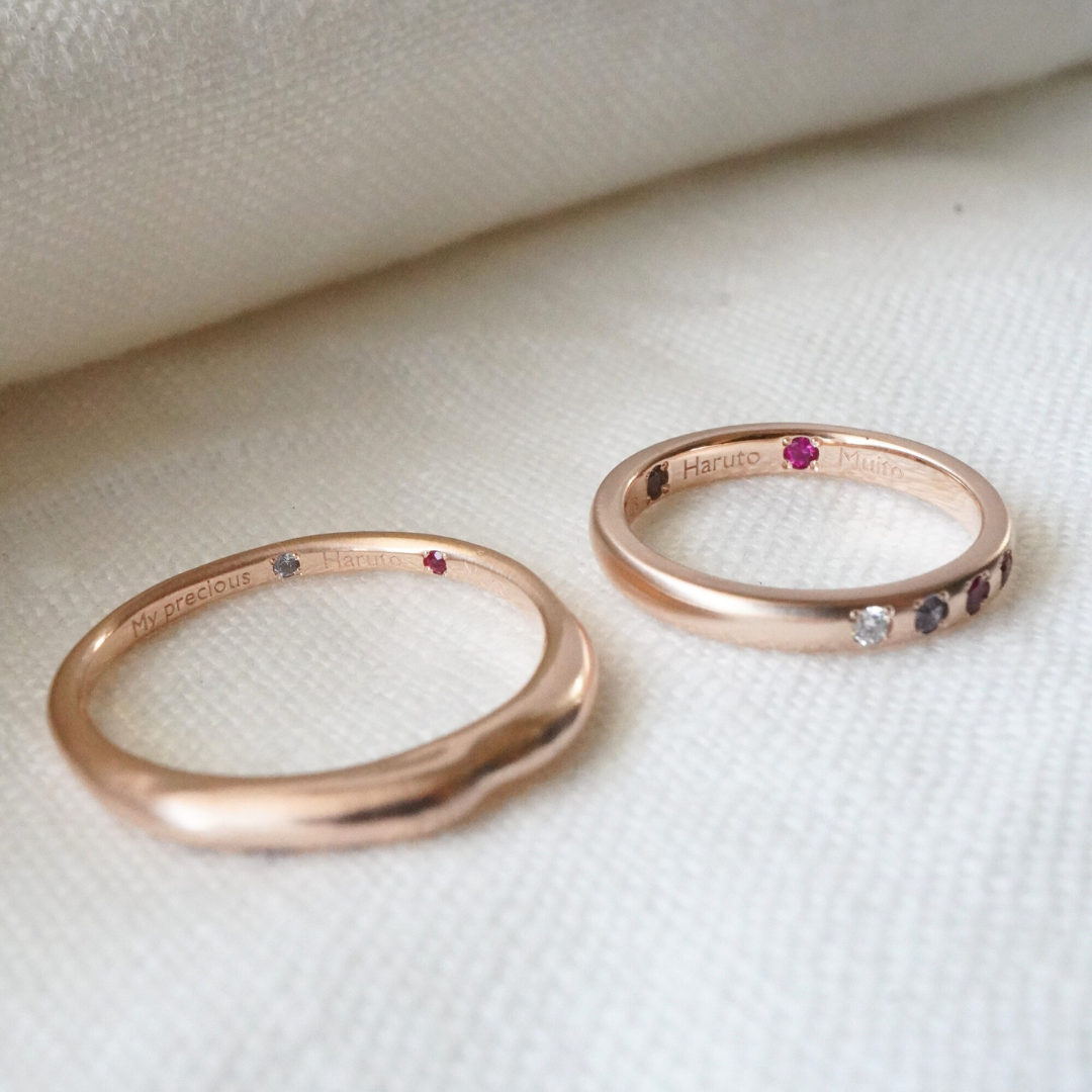 リングのデザインも多数ご用意しています。また、刻印を入れることも可能です。