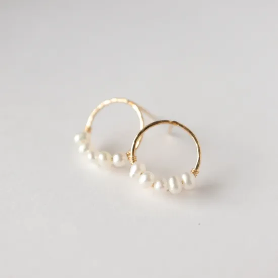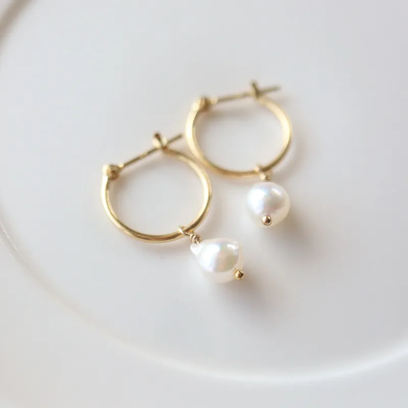 自然味あふれるあこや真珠をシンプルなフープピアスに。