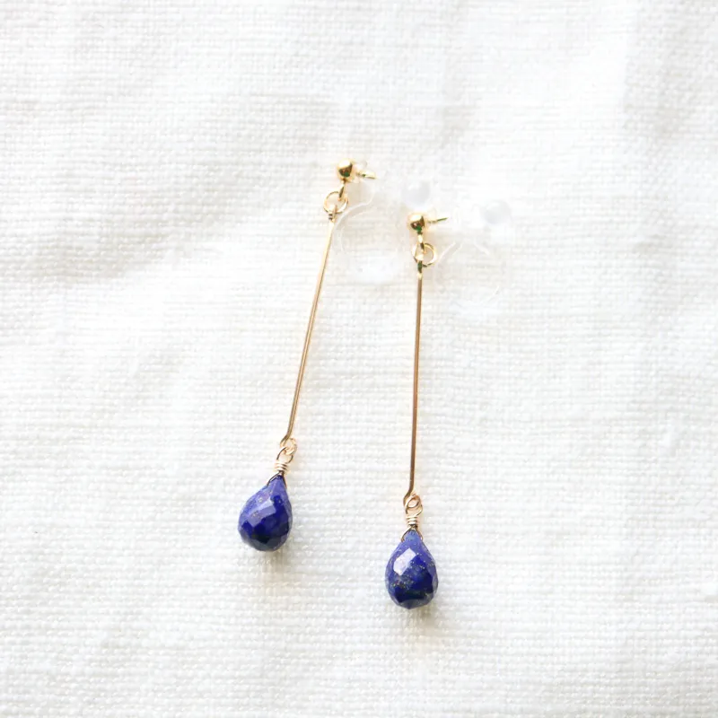 スッとまっすぐに下に伸びる細い線と、その下に揺れるドロップのラピスラズリ。
