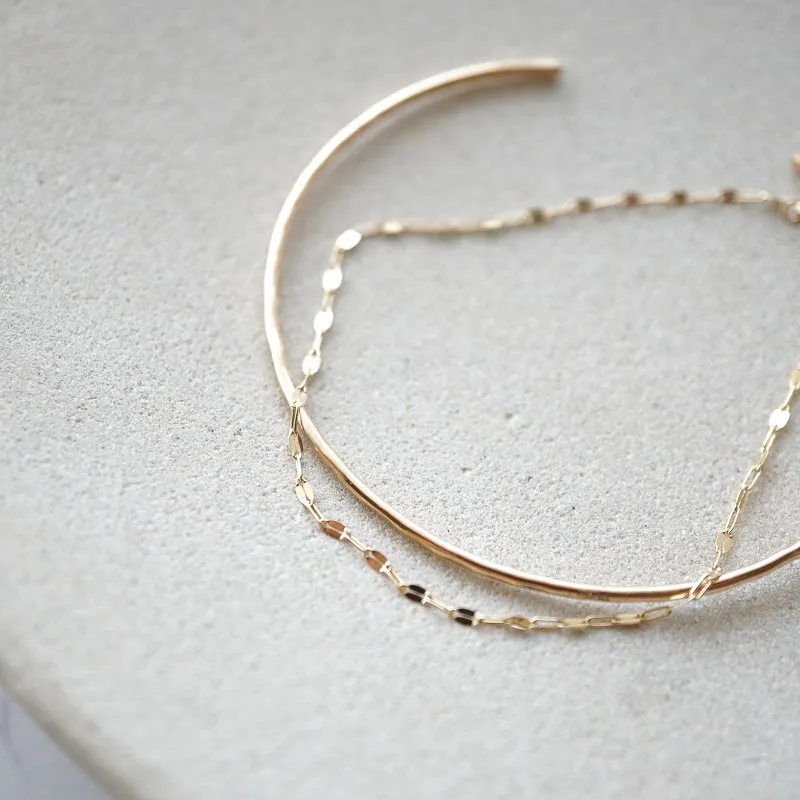 14kgf素材でつくるプレーンなバングルと、K10のLEAFYブレスレット