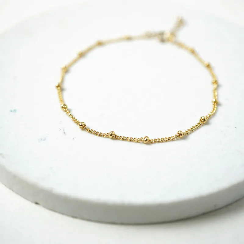目の細かなチェーンの間にリズミカルに並んだゴールドビーズ。