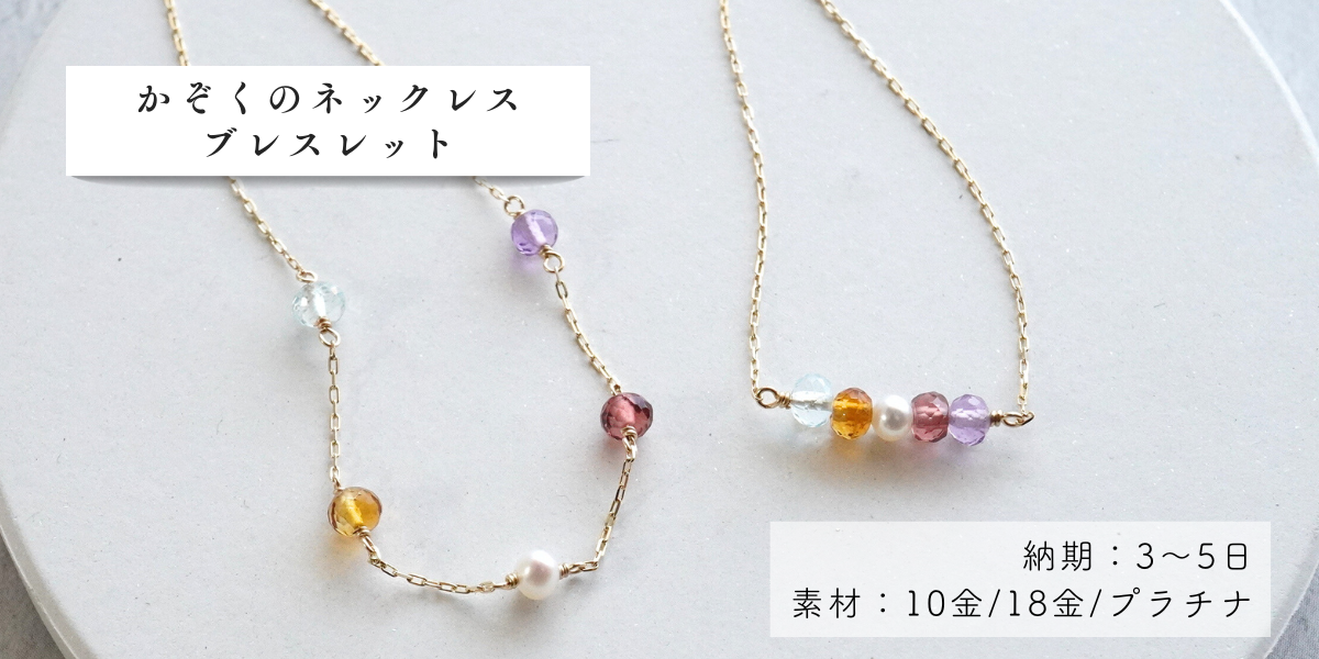 誕生石を連ねたファミリーネックレス・ブレスレット。