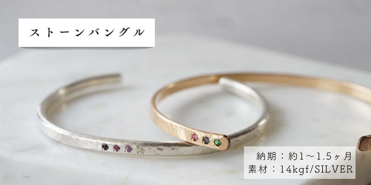 フラットゴールドバングルにお好きな誕生石を埋めることができるバングル。