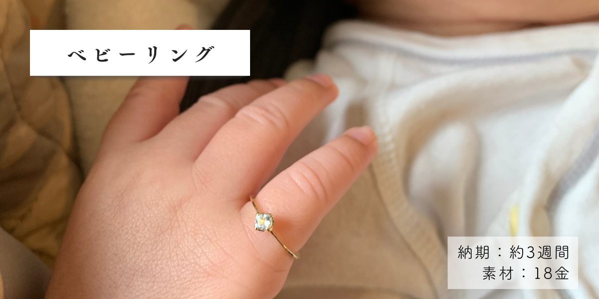 お子様の誕生記念に作る、小さな小さな誕生石のリング。
