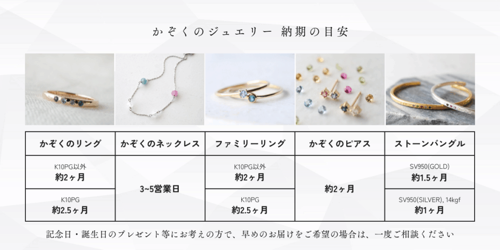 結婚10周年や20周年の記念、出産祝いにも人気のかぞくのジュエリー